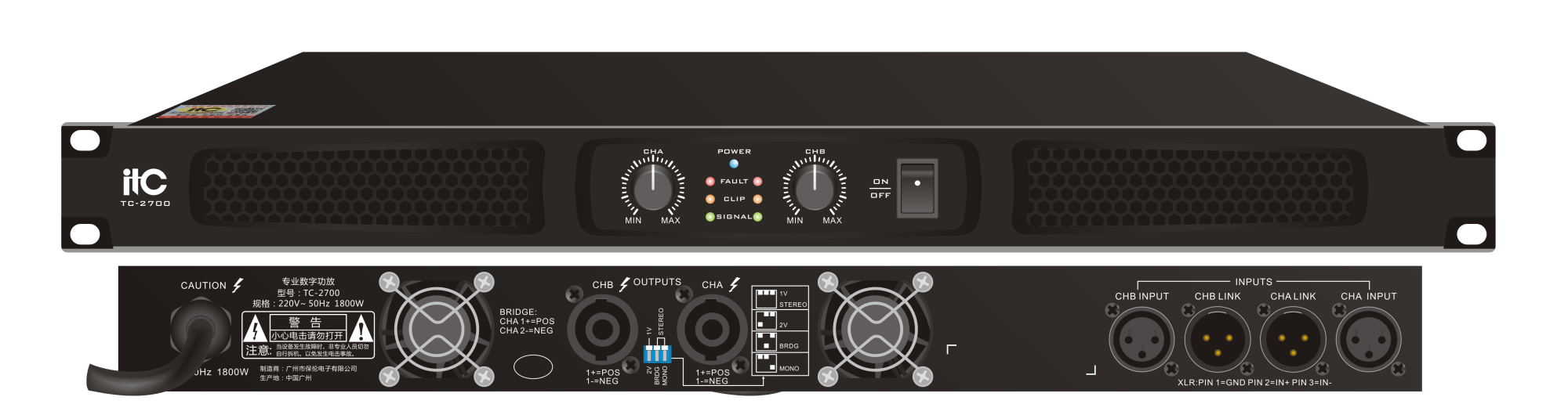 TC-2700 2-канальный профессиональный усилитель, стерео 8 Ом: 2*700 Вт; 4 Ом: 2*1200 Вт; 2 Ом: 2*1800 Вт; Мост 16 Ом: 1400 Вт; 8 Ом: 2400 Вт; 4 Ом: 3600 Вт