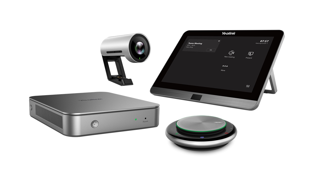 Видеотерминал для компактных переговорных. Видеокамера UVC30 Room, размещаемая на ТВ-панели с помощью выдвижного крепления, обеспечивает захват видео четкостью до 4k и динамикой до 60 кадр/с. Спикерфон CP900, оснащенный динамиком и шестью встроенными микрофонами, обеспечивает громкость звука и круговой захват голоса в радиусе до 2 м. Управление конференциями, ввод контента и совместная работа с ним осуществляется с сенсорной панели MTouch II. В комплект включен также мини-ПК со всем необходимым ПО, конструкция которого позволяет надежно и безопасно закрепить его в удобном месте конференц-зала.