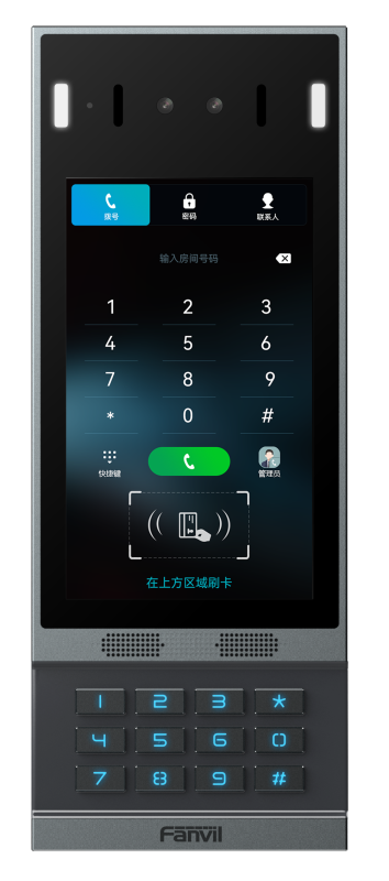 Fanvil i67 — это домофон в новом дизайне с распознаванием лиц, полной клавиатурой (12 клавиш), большим сенсорным дисплеем 7", камерой 2 Мп и считывателем RFID. Конструкция изделия выполнена из цельноалюминиевого сплава со степенью ударопрочности IK07.