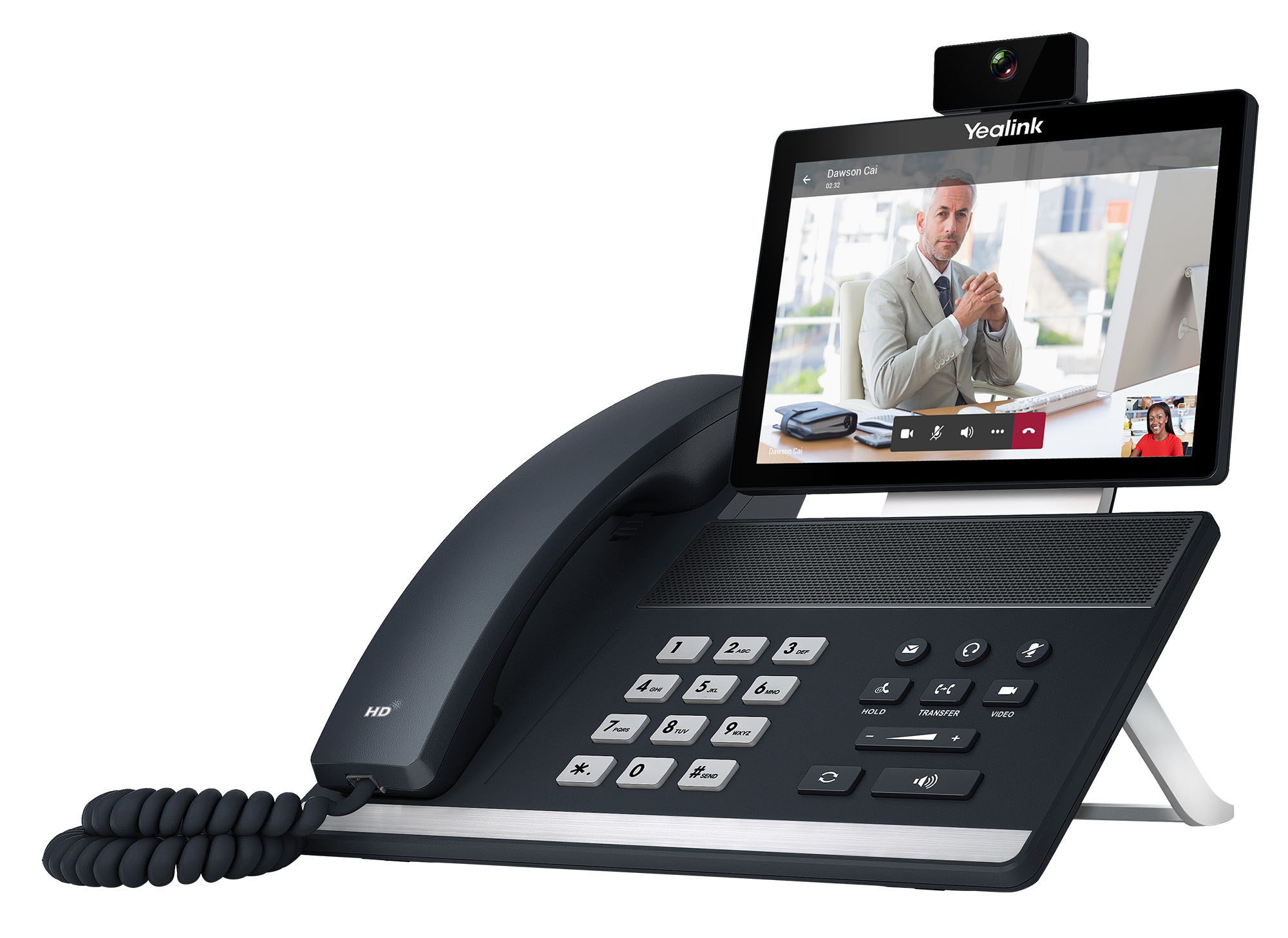Персональный видеотерминал для стороннего сервиса. Предназначен для рабочих мест руководителей, оснащен полной клавиатурой, цветным, подстраиваемым по наклону, сенсорным 8”-экраном Multi-touch и аудиосистемой Optima HD. HDMI-выход для внешнего экрана и отсоединяемая видеокамера позволяет применять его также в небольших переговорных, дополнительно рекомендуется широкоугольная видеокамера UVC30 Room. Поддерживается системой удаленного управления, диагностики и техобслуживания Yealink YDMP, а также Unify Square Device Management Platform и стороннего сервиса.